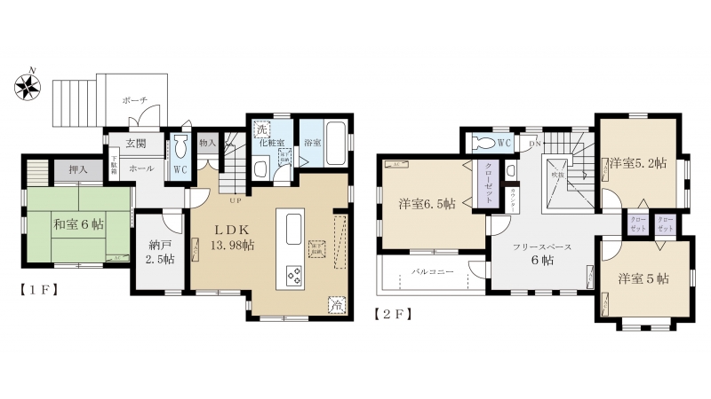 | 面積 | 1階 55.78㎡ 2階 48.74㎡(登記簿) |